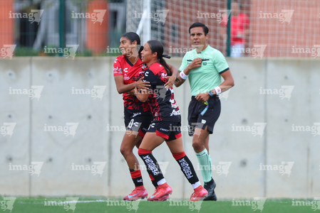Guadalajara, Jalisco, 25 de septiembre de 2025. Noemí Villalobos en festejo de gol, durante el partido correspondiente a la jornada 12 del torneo Apertura 2025 de la Liga BBVA MX Femenil categoría Sub19, entre las Rojinegras del Atlas y las Tigres de la UANL, realizado en la Academia AGA. Foto: Imago7/ Juan Carlos Cubeyro.