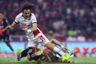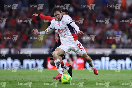 Guadalajara, Jalisco, 19 de abril de 2025. Mateo Chávez, durante el partido correspondiente a la jornada 17 del torneo Clausura 2025 de la Liga BBVA MX, entre los Rojinegros del Atlas y las Chivas Rayadas del Guadalajara, realizado en el estadio Jalisco. Foto: Imago7/ Juan Carlos Cubeyro.
