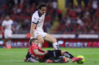 Guadalajara, Jalisco, 19 de abril de 2025. Mateo Chávez en lamento, durante el partido correspondiente a la jornada 17 del torneo Clausura 2025 de la Liga BBVA MX, entre los Rojinegros del Atlas y las Chivas Rayadas del Guadalajara, realizado en el estadio Jalisco. Foto: Imago7/ Juan Carlos Cubeyro.