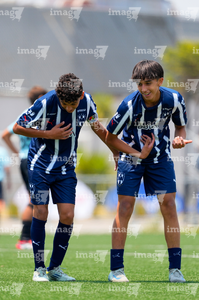 Toluca, Estado de México, 18 de abril de 2025. Armando Soriano en festejo de gol, durante el partido correspondiente a la jornada 1 del torneo Primavera 2025 de la Liga BBVA MX categoría Sub14, entre los Rayados del Monterrey y los Venados de Yucatán, realizado en las instalaciones de la Federación Mexicana de Futbol. Foto: Imago7/ Manlio Contreras