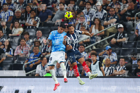 Guadalupe, Nuevo León, 27 de abril de 2025. Pedro Pedraza e Iker Fimbres, durante el partido correspondiente al Play In del torneo Clausura 2025 de la Liga BBVA MX, entre los Rayadas del Monterrey y los Tuzos del Pachuca, realizado en el estadio BBVA. Foto: Imago7/Richard Vogel