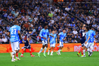 Guadalupe, Nuevo León, 27 de abril de 2025. Jugadores del Pachuca en festejo de gol, durante el partido correspondiente al Play In del torneo Clausura 2025 de la Liga BBVA MX, entre los Rayadas del Monterrey y los Tuzos del Pachuca, realizado en el estadio BBVA. Foto: Imago7/Richard Vogel