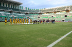 Zacatepec, Morelos, 20 de septiembre de 2025. Protocolo, durante el partido correspondiente a la jornada 8 del torneo Apertura 2025 de la Liga BBVA Expansión MX, entre los Potros de Hierro del Atlante FC y los Leones Negros de la UDG, realizado en el estadio Agustín Coruco Díaz. Foto: Imago7/ Daniel Sydney
