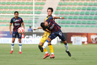 Zacatepec, Morelos, 20 de septiembre de 2025. Allan Wlk y Arturo Ledesma, durante el partido correspondiente a la jornada 8 del torneo Apertura 2025 de la Liga BBVA Expansión MX, entre los Potros de Hierro del Atlante FC y los Leones Negros de la UDG, realizado en el estadio Agustín Coruco Díaz. Foto: Imago7/ Daniel Sydney