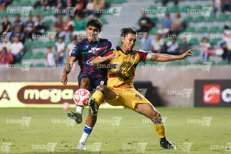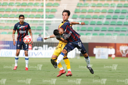 Zacatepec, Morelos, 20 de septiembre de 2025. Carlos Fierro y Armando Escobar, durante el partido correspondiente a la jornada 8 del torneo Apertura 2025 de la Liga BBVA Expansión MX, entre los Potros de Hierro del Atlante FC y los Leones Negros de la UDG, realizado en el estadio Agustín Coruco Díaz. Foto: Imago7/ Daniel Sydney