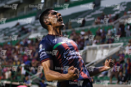 Zacatepec, Morelos, 20 de septiembre de 2025. Francisco Reyes en festejo de gol, durante el partido correspondiente a la jornada 8 del torneo Apertura 2025 de la Liga BBVA Expansión MX, entre los Potros de Hierro del Atlante FC y los Leones Negros de la UDG, realizado en el estadio Agustín Coruco Díaz. Foto: Imago7/ Daniel Sydney