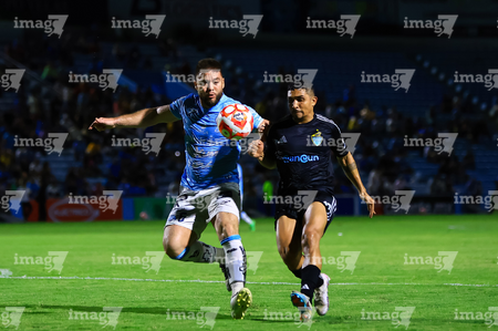 Tampico Madero, Tamaulipas, 20 de septiembre de 2025. Benjamín Galindo y Oscar Villa, durante el partido correspondiente a la jornada 8 del torneo Apertura 2025 de la Liga BBVA Expansión MX, entre la Jaiba Brava del Tampico Madero y el Cancún FC, realizado en el estadio Tamaulipas. Foto: Imago7/ Richard Vogel