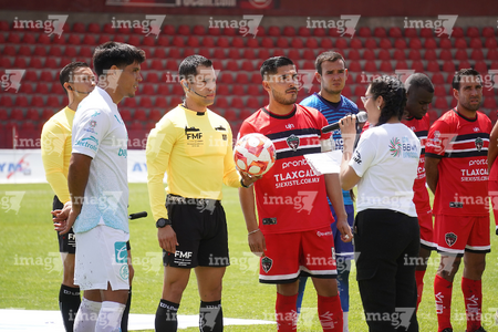 Tlaxcala, Tlaxcala, 28 de septiembre de 2025. Protocolo, durante el partido correspondiente a la jornada 9 del torneo Apertura 2025 de la Liga BBVA Expansión MX, entre los Coyotes de Tlaxcala y el Atlético La Paz, realizado en el estadio Tlahuicole. Foto: Imago7/ Liz Romero