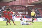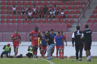 Tlaxcala, Tlaxcala, 28 de septiembre de 2025. Christian Mota De Oliveira en lamento, durante el partido correspondiente a la jornada 9 del torneo Apertura 2025 de la Liga BBVA Expansión MX, entre los Coyotes de Tlaxcala y el Atlético La Paz, realizado en el estadio Tlahuicole. Foto: Imago7/ Liz Romero