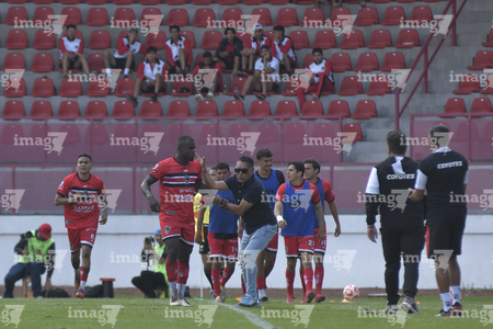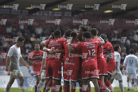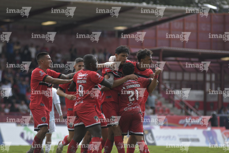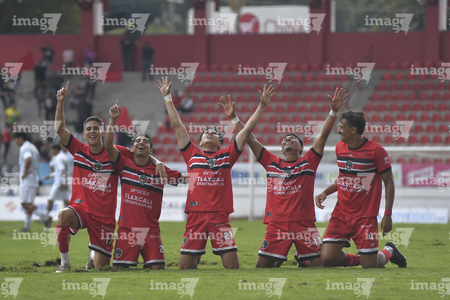Tlaxcala, Tlaxcala, 28 de septiembre de 2025. Jugadores de Coyotes en festejo de gol, durante el partido correspondiente a la jornada 9 del torneo Apertura 2025 de la Liga BBVA Expansión MX, entre los Coyotes de Tlaxcala y el Atlético La Paz, realizado en el estadio Tlahuicole. Foto: Imago7/ Liz Romero