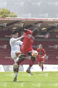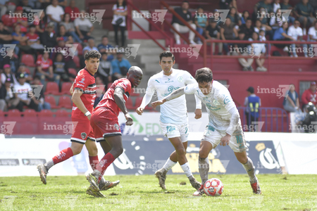 Tlaxcala, Tlaxcala, 28 de septiembre de 2025. Martín Barragán y Jordan Silva, durante el partido correspondiente a la jornada 9 del torneo Apertura 2025 de la Liga BBVA Expansión MX, entre los Coyotes de Tlaxcala y el Atlético La Paz, realizado en el estadio Tlahuicole. Foto: Imago7/ Liz Romero