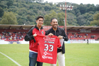 Tlaxcala, Tlaxcala, 28 de septiembre de 2025. Reconocimiento a Marco Fabian, durante el partido correspondiente a la jornada 9 del torneo Apertura 2025 de la Liga BBVA Expansión MX, entre los Coyotes de Tlaxcala y el Atlético La Paz, realizado en el estadio Tlahuicole. Foto: Imago7/ Liz Romero