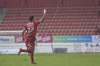 Tlaxcala, Tlaxcala, 28 de septiembre de 2025. Fabían Partida en festejo de gol, durante el partido correspondiente a la jornada 9 del torneo Apertura 2025 de la Liga BBVA Expansión MX, entre los Coyotes de Tlaxcala y el Atlético La Paz, realizado en el estadio Tlahuicole. Foto: Imago7/ Liz Romero