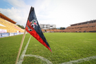Oaxaca, Oaxaca, 28 de septiembre de 2025. Banderín de tiro de esquina, durante el partido correspondiente a la jornada 9 del torneo Apertura 2025 de la Liga BBVA Expansión MX, entre los Alebrijes de Oaxaca y los Freseros de Irapuato, realizado en el estadio Instituto Tecnológico de Oaxaca. Foto: Imago7/ Constantino Cruz