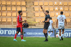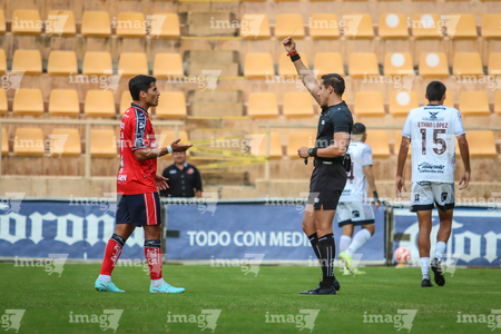 Oaxaca, Oaxaca, 28 de septiembre de 2025. Eduardo Reynoso Martínez muestra tarjeta amarilla, durante el partido correspondiente a la jornada 9 del torneo Apertura 2025 de la Liga BBVA Expansión MX, entre los Alebrijes de Oaxaca y los Freseros de Irapuato, realizado en el estadio Instituto Tecnológico de Oaxaca. Foto: Imago7/ Constantino Cruz
