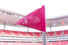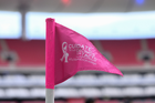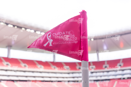 Zapopan, Jalisco, 3 de octubre de 2025. Banderín de tiro de esquina de la Campaña Rosa para la concientización del Cáncer de Mama, durante el partido correspondiente a la jornada 10 del torneo Apertura 2025 de la Liga BBVA Expansión MX, entre el CD Tapatío y Alebrijes de Oaxaca, realizado en el estadio Akron. Foto: Imago7/ Jair Terán