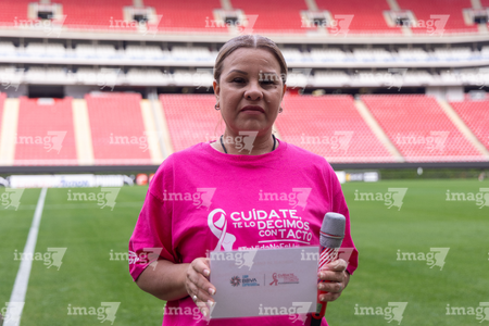 Zapopan, Jalisco, 3 de octubre de 2025. Embajadora de la Campaña Rosa para la concientización del Cáncer de Mama, durante el partido correspondiente a la jornada 10 del torneo Apertura 2025 de la Liga BBVA Expansión MX, entre el CD Tapatío y Alebrijes de Oaxaca, realizado en el estadio Akron. Foto: Imago7/ Jair Terán