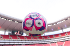 Zapopan, Jalisco, 3 de octubre de 2025. Balón de futbol Voit Aereus de la Campaña Rosa para la concientización del Cáncer de Mama, durante el partido correspondiente a la jornada 10 del torneo Apertura 2025 de la Liga BBVA Expansión MX, entre el CD Tapatío y Alebrijes de Oaxaca, realizado en el estadio Akron. Foto: Imago7/ Jair Terán