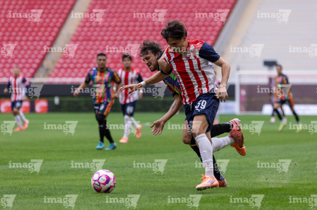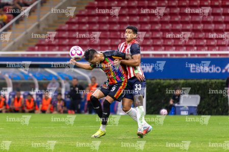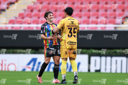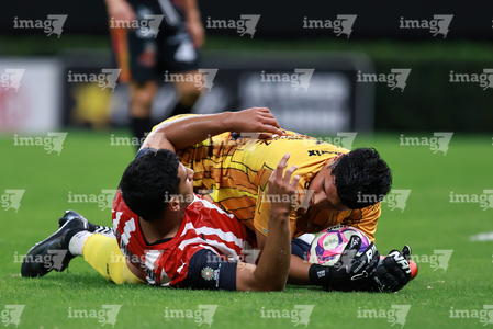 Zapopan, Jalisco, 3 de octubre de 2025. Héctor Mascorro y Raúl Martínez, durante el partido correspondiente a la jornada 10 del torneo Apertura 2025 de la Liga BBVA Expansión MX, entre el CD Tapatío y Alebrijes de Oaxaca, realizado en el estadio Akron. Foto: Imago7/Cristian Hernandez