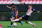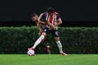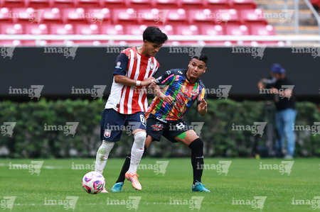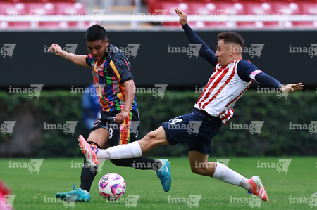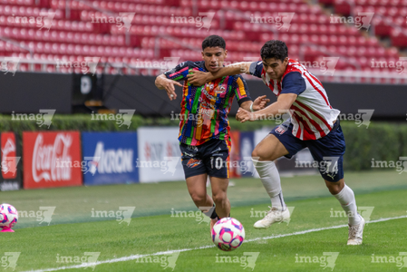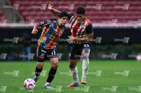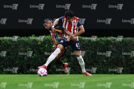 Zapopan, Jalisco, 3 de octubre de 2025. Erick Carballo y Mario Anaya, durante el partido correspondiente a la jornada 10 del torneo Apertura 2025 de la Liga BBVA Expansión MX, entre el CD Tapatío y Alebrijes de Oaxaca, realizado en el estadio Akron. Foto: Imago7/ Jair Terán