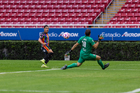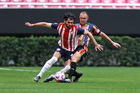 Zapopan, Jalisco, 3 de octubre de 2025. Sergio Meza anota gol, durante el partido correspondiente a la jornada 10 del torneo Apertura 2025 de la Liga BBVA Expansión MX, entre el CD Tapatío y Alebrijes de Oaxaca, realizado en el estadio Akron. Foto: Imago7/ Jair Terán