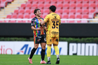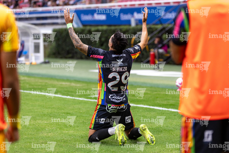 Zapopan, Jalisco, 3 de octubre de 2025. Sergio Meza en festejo de gol, durante el partido correspondiente a la jornada 10 del torneo Apertura 2025 de la Liga BBVA Expansión MX, entre el CD Tapatío y Alebrijes de Oaxaca, realizado en el estadio Akron. Foto: Imago7/ Jair Terán