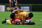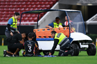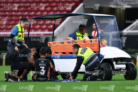 Zapopan, Jalisco, 3 de octubre de 2025. Adrián Justo resultó lesionado, durante el partido correspondiente a la jornada 10 del torneo Apertura 2025 de la Liga BBVA Expansión MX, entre el CD Tapatío y Alebrijes de Oaxaca, realizado en el estadio Akron. Foto: Imago7/Cristian Hernandez