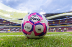 Guadalajara, Jalisco, 3 de octubre de 2025. Balón de futbol Voit Aereus de la Campaña Rosa para la concientización del Cáncer de Mama, durante el partido correspondiente a la jornada 10 del torneo Apertura 2025 de la Liga BBVA Expansión MX, entre los Leones Negros de la UDG y los Dorados de Sinaloa, realizado en el estadio Jalisco. Foto: Imago7/ Jair Terán