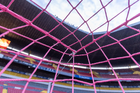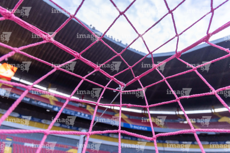 Guadalajara, Jalisco, 3 de octubre de 2025. Red de portería de la Campaña Rosa para la concientización del Cáncer de Mama, durante el partido correspondiente a la jornada 10 del torneo Apertura 2025 de la Liga BBVA Expansión MX, entre los Leones Negros de la UDG y los Dorados de Sinaloa, realizado en el estadio Jalisco. Foto: Imago7/ Jair Terán