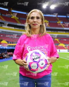 Guadalajara, Jalisco, 3 de octubre de 2025. Embajadora de la Campaña Rosa para la concientización del Cáncer de Mama, durante el partido correspondiente a la jornada 10 del torneo Apertura 2025 de la Liga BBVA Expansión MX, entre los Leones Negros de la UDG y los Dorados de Sinaloa, realizado en el estadio Jalisco. Foto: Imago7/ Juan Carlos Cubeyro.