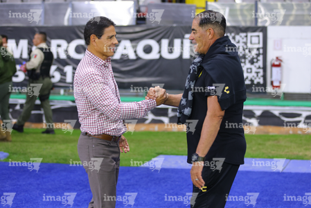 Guadalajara, Jalisco, 3 de octubre de 2025. Luis Alfonso Sosa director técnico y Francisco Ramírez, director técnico, durante el partido correspondiente a la jornada 10 del torneo Apertura 2025 de la Liga BBVA Expansión MX, entre los Leones Negros de la UDG y los Dorados de Sinaloa, realizado en el estadio Jalisco. Foto: Imago7/ Juan Carlos Cubeyro.