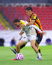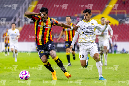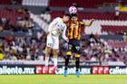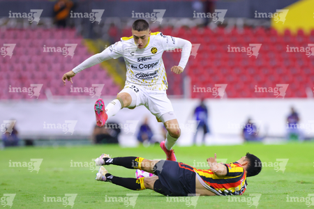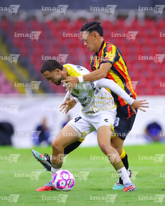 Guadalajara, Jalisco, 3 de octubre de 2025. Carlos Galicia y Mauro Valenzuela, durante el partido correspondiente a la jornada 10 del torneo Apertura 2025 de la Liga BBVA Expansión MX, entre los Leones Negros de la UDG y los Dorados de Sinaloa, realizado en el estadio Jalisco. Foto: Imago7/ Jair Terán