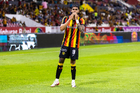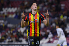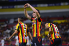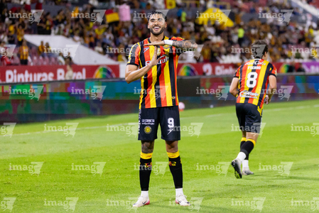 Guadalajara, Jalisco, 3 de octubre de 2025. Raúl Camcho en festejo de gol, durante el partido correspondiente a la jornada 10 del torneo Apertura 2025 de la Liga BBVA Expansión MX, entre los Leones Negros de la UDG y los Dorados de Sinaloa, realizado en el estadio Jalisco. Foto: Imago7/ Juan Carlos Cubeyro.