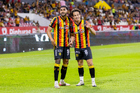 Guadalajara, Jalisco, 3 de octubre de 2025. Raúl Camchog en festejo de gol, durante el partido correspondiente a la jornada 10 del torneo Apertura 2025 de la Liga BBVA Expansión MX, entre los Leones Negros de la UDG y los Dorados de Sinaloa, realizado en el estadio Jalisco. Foto: Imago7/ Jair Terán