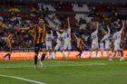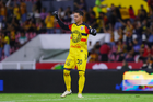 Guadalajara, Jalisco, 3 de octubre de 2025. Raúl Camcho en lamento, durante el partido correspondiente a la jornada 10 del torneo Apertura 2025 de la Liga BBVA Expansión MX, entre los Leones Negros de la UDG y los Dorados de Sinaloa, realizado en el estadio Jalisco. Foto: Imago7/ Juan Carlos Cubeyro.