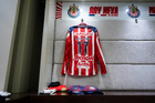 Zapopan, Jalisco, 20 de septiembre de 2025. Playera de Javier Hernández "Chicharito", durante el partido correspondiente a la jornada 9 del torneo Apertura 2025 de la Liga BBVA MX, entre las Chivas Rayadas del Guadalajara y los Diablos Rojos del Toluca, realizado en el estadio Akron. Foto: Imago7/ Hugo Ramírez