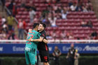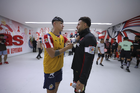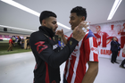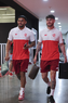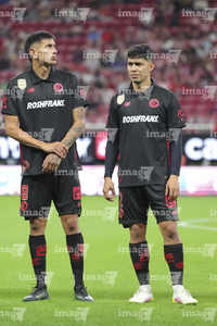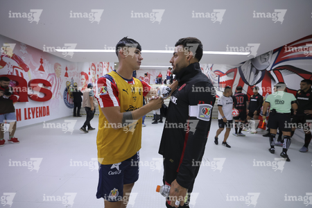 Zapopan, Jalisco, 20 de septiembre de 2025. Playeras de Santiago Sandoval y Armando González, durante el partido correspondiente a la jornada 9 del torneo Apertura 2025 de la Liga BBVA MX, entre las Chivas Rayadas del Guadalajara y los Diablos Rojos del Toluca, realizado en el estadio Akron. Foto: Imago7/ Hugo Ramírez