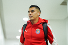 Zapopan, Jalisco, 20 de septiembre de 2025. Playera de Efraín Álvarez, durante el partido correspondiente a la jornada 9 del torneo Apertura 2025 de la Liga BBVA MX, entre las Chivas Rayadas del Guadalajara y los Diablos Rojos del Toluca, realizado en el estadio Akron. Foto: Imago7/ Hugo Ramírez