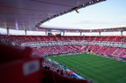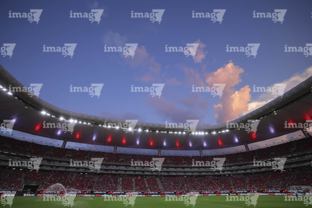 Zapopan, Jalisco, 20 de septiembre de 2025. Panorámica del estadio, durante el partido correspondiente a la jornada 9 del torneo Apertura 2025 de la Liga BBVA MX, entre las Chivas Rayadas del Guadalajara y los Diablos Rojos del Toluca, realizado en el estadio Akron. Foto: Imago7/ Rafael Vadillo