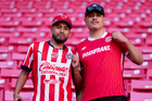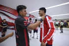 Zapopan, Jalisco, 20 de septiembre de 2025. Playeras de Bryan González y José Castillo, durante el partido correspondiente a la jornada 9 del torneo Apertura 2025 de la Liga BBVA MX, entre las Chivas Rayadas del Guadalajara y los Diablos Rojos del Toluca, realizado en el estadio Akron. Foto: Imago7/ Hugo Ramírez
