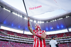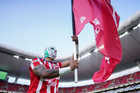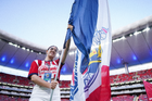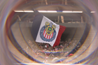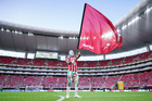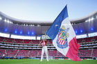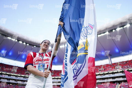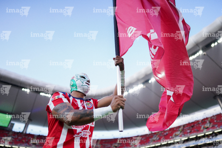 Zapopan, Jalisco, 20 de septiembre de 2025. Bandera de Chivas, durante el partido correspondiente a la jornada 9 del torneo Apertura 2025 de la Liga BBVA MX, entre las Chivas Rayadas del Guadalajara y los Diablos Rojos del Toluca, realizado en el estadio Akron. Foto: Imago7/Cristian Hernandez