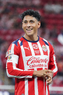 Zapopan, Jalisco, 20 de septiembre de 2025. Alexis Vega, durante el partido correspondiente a la jornada 9 del torneo Apertura 2025 de la Liga BBVA MX, entre las Chivas Rayadas del Guadalajara y los Diablos Rojos del Toluca, realizado en el estadio Akron. Foto: Imago7/ Rafael Vadillo
