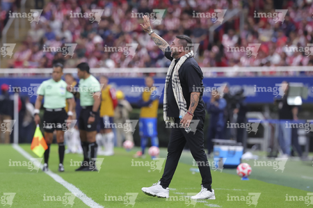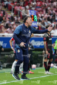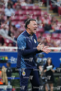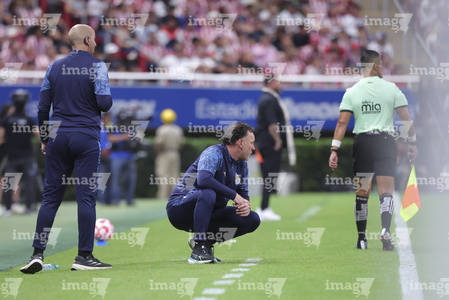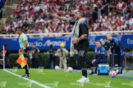 Zapopan, Jalisco, 20 de septiembre de 2025. Gabriel Milito, durante el partido correspondiente a la jornada 9 del torneo Apertura 2025 de la Liga BBVA MX, entre las Chivas Rayadas del Guadalajara y los Diablos Rojos del Toluca, realizado en el estadio Akron. Foto: Imago7/ Hugo Ramírez