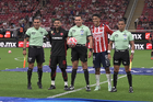 Zapopan, Jalisco, 20 de septiembre de 2025. Protocolo, durante el partido correspondiente a la jornada 9 del torneo Apertura 2025 de la Liga BBVA MX, entre las Chivas Rayadas del Guadalajara y los Diablos Rojos del Toluca, realizado en el estadio Akron. Foto: Imago7/Cristian Hernandez