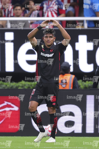 Zapopan, Jalisco, 20 de septiembre de 2025. Jesús Gallardo en festejo de gol, durante el partido correspondiente a la jornada 9 del torneo Apertura 2025 de la Liga BBVA MX, entre las Chivas Rayadas del Guadalajara y los Diablos Rojos del Toluca, realizado en el estadio Akron. Foto: Imago7/ Rafael Vadillo