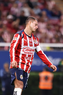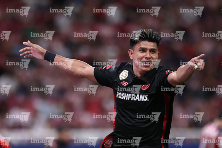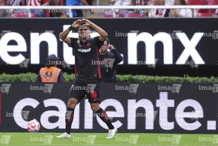 Zapopan, Jalisco, 20 de septiembre de 2025. Jesús Gallardo en festejo de gol, durante el partido correspondiente a la jornada 9 del torneo Apertura 2025 de la Liga BBVA MX, entre las Chivas Rayadas del Guadalajara y los Diablos Rojos del Toluca, realizado en el estadio Akron. Foto: Imago7/Cristian Hernandez