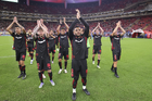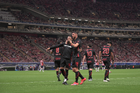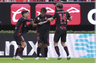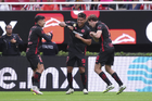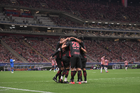 Zapopan, Jalisco, 20 de septiembre de 2025. Jugadores de Toluca en festejo, durante el partido correspondiente a la jornada 9 del torneo Apertura 2025 de la Liga BBVA MX, entre las Chivas Rayadas del Guadalajara y los Diablos Rojos del Toluca, realizado en el estadio Akron. Foto: Imago7/ Hugo Ramírez