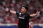 Zapopan, Jalisco, 20 de septiembre de 2025. Alexis Vega en festejo de gol, durante el partido correspondiente a la jornada 9 del torneo Apertura 2025 de la Liga BBVA MX, entre las Chivas Rayadas del Guadalajara y los Diablos Rojos del Toluca, realizado en el estadio Akron. Foto: Imago7/ Rafael Vadillo