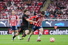 Zapopan, Jalisco, 20 de septiembre de 2025. Portigoles, durante el partido correspondiente a la jornada 9 del torneo Apertura 2025 de la Liga BBVA MX, entre las Chivas Rayadas del Guadalajara y los Diablos Rojos del Toluca, realizado en el estadio Akron. Foto: Imago7/ Hugo Ramírez