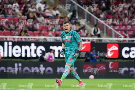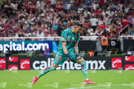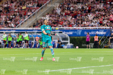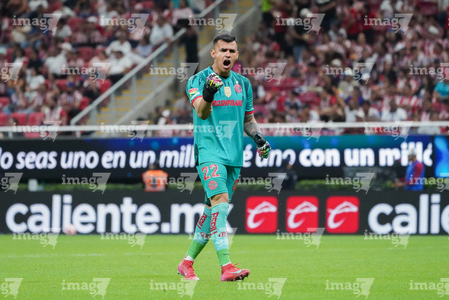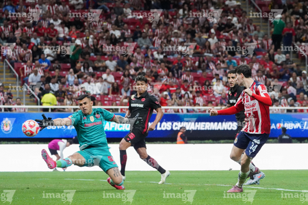 Zapopan, Jalisco, 20 de septiembre de 2025. Raúl Rangel ataja, durante el partido correspondiente a la jornada 9 del torneo Apertura 2025 de la Liga BBVA MX, entre las Chivas Rayadas del Guadalajara y los Diablos Rojos del Toluca, realizado en el estadio Akron. Foto: Imago7/Cristian Hernandez